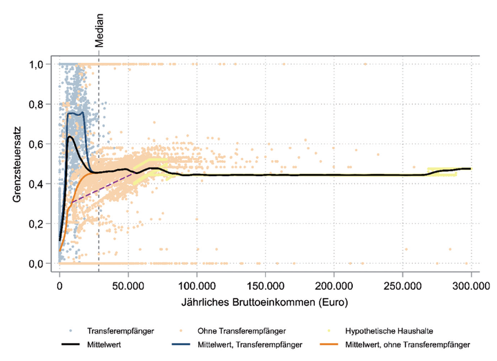 Über die Ausgestaltung des deutschen Steuer- und Transfersystems wird im Zusammenhang mit der Bundestagswahl neuerlich kontrovers diskutiert. Die Autoren greifen zentrale Aspekte der öffentlichen Diskussion über die steuerliche Behandlung niedriger, mittlerer und hoher Einkommen auf und analysieren diese aus wohlfahrts- und politökonomischer Perspektive. In ihrer Analyse verbinden sie Methoden der quantitativen Finanzwissenschaft mit einem Mikrosimulationsmodell und beschreiben damit mögliche Reformrichtungen. Für den Bereich der hohen Einkommen stellt sich heraus, dass eine Erhöhung des Spitzensteuersatzes zwar möglich ist, dieser jedoch erst bei höheren Einkommensniveaus als im Status quo greifen sollte. Während die Autoren für den mittleren Einkommensbereich eine Abschaffung des sogenannten Mittelstandsbauchs aus Effizienzgesichtspunkten und politökonomischen Erwägungen skeptisch sehen, legen sie für den Bereich niedriger Einkommen dar, wie das Transfersystem effizienzsteigernd zu reformieren wäre.